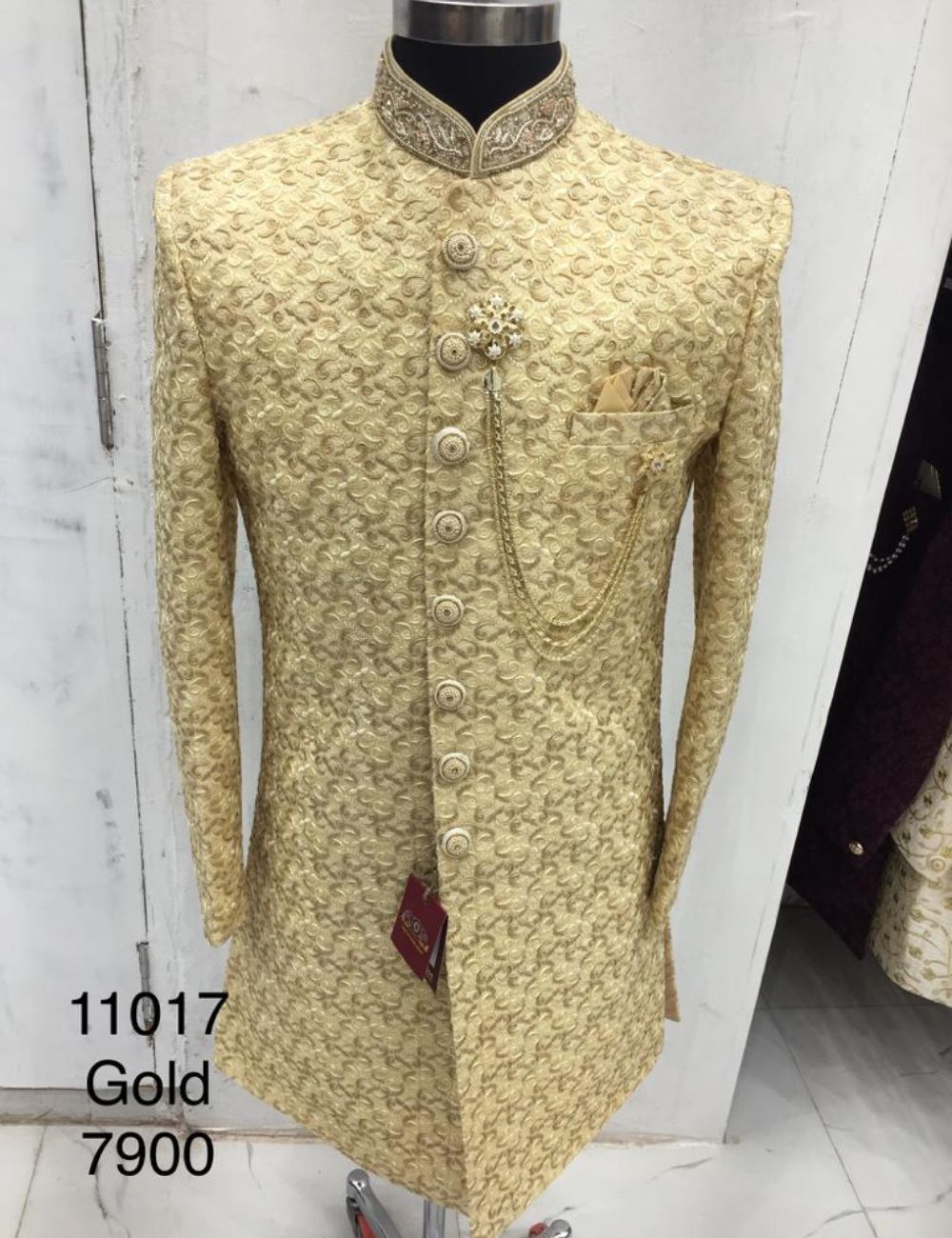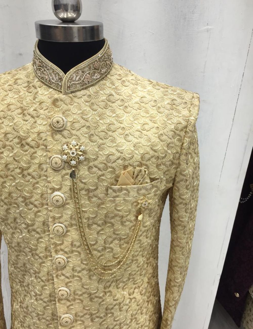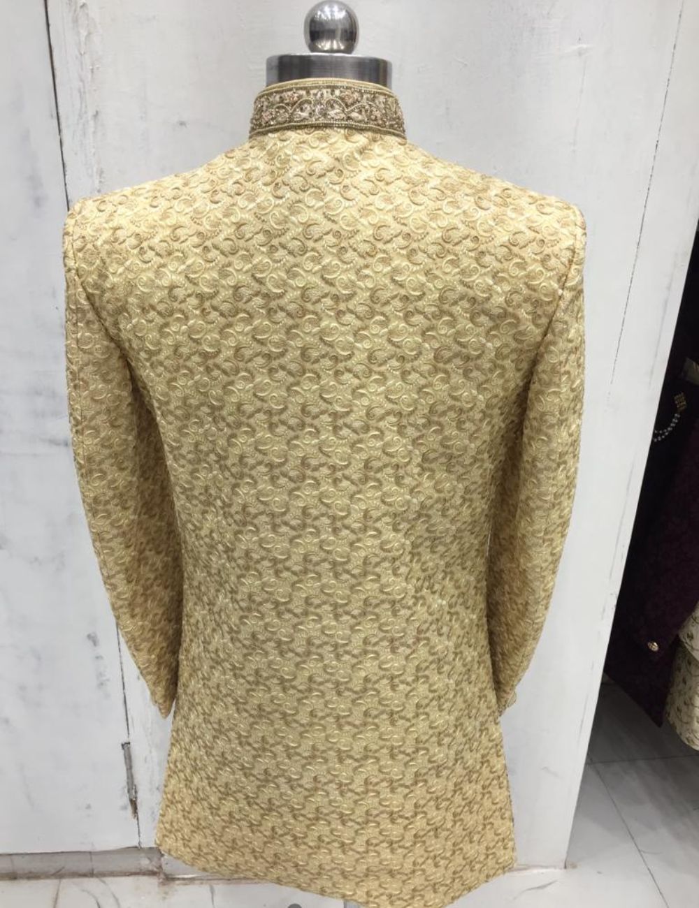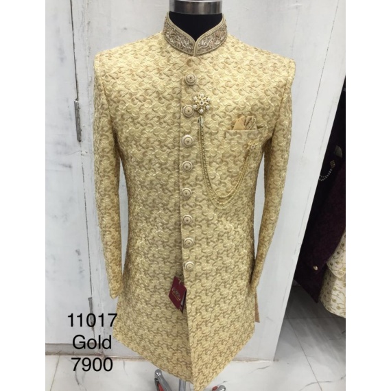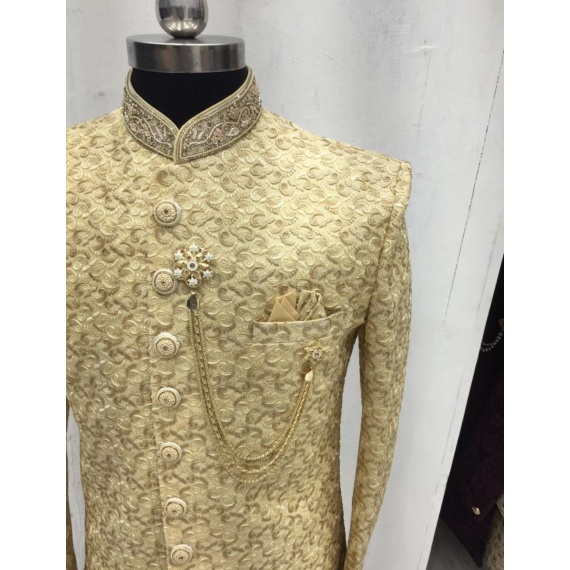 Mens sherwani with embroidered collar and buttons