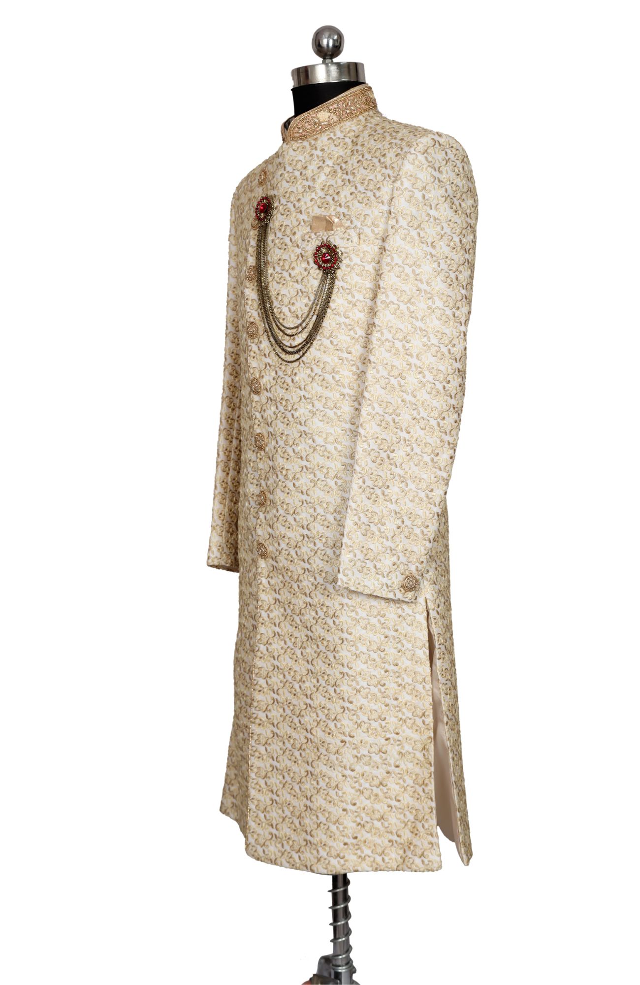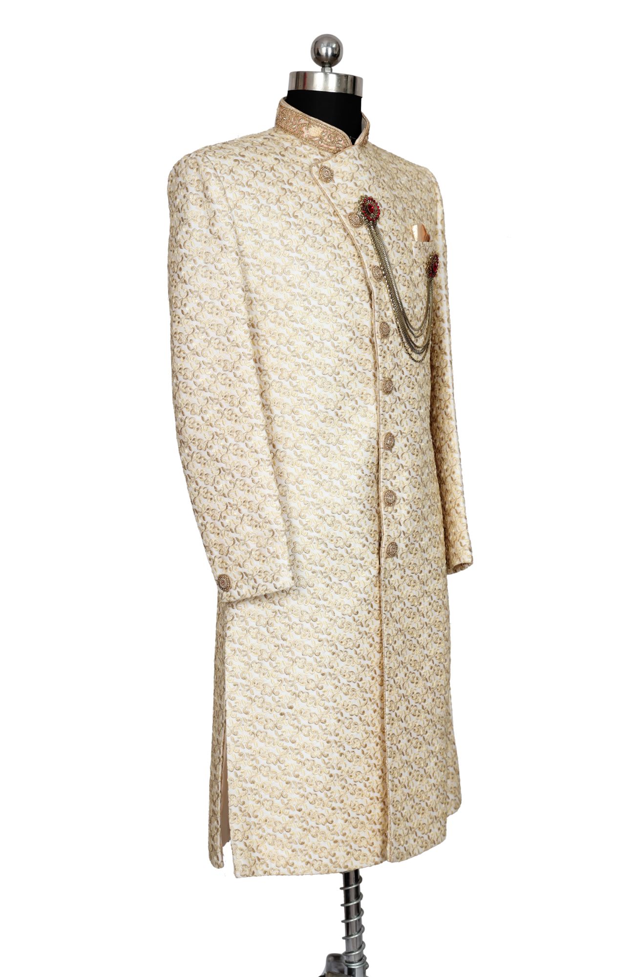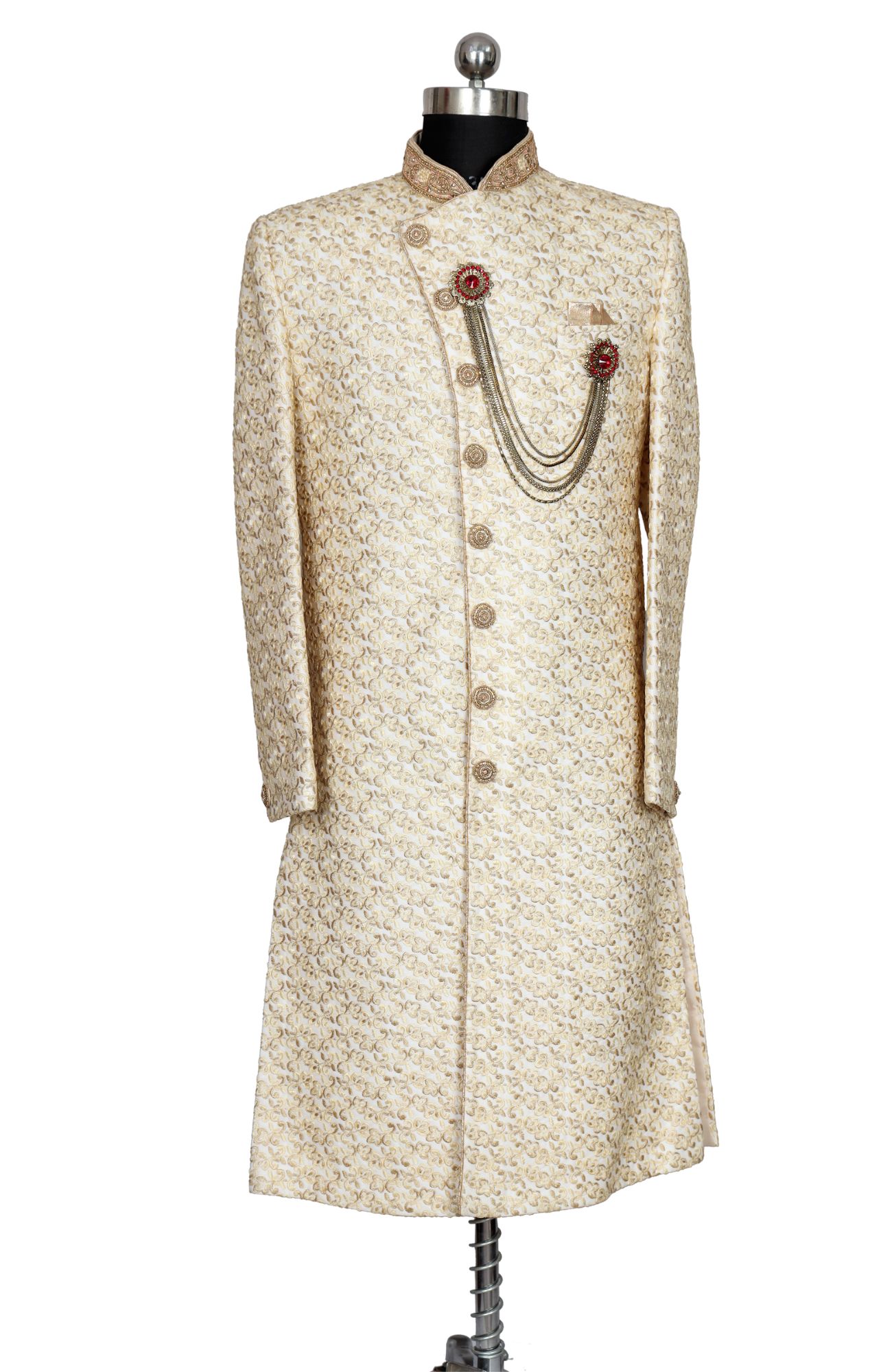 Mens Sherwani on Net based fabric with embroidered collar and buttons. Best in fit and price.