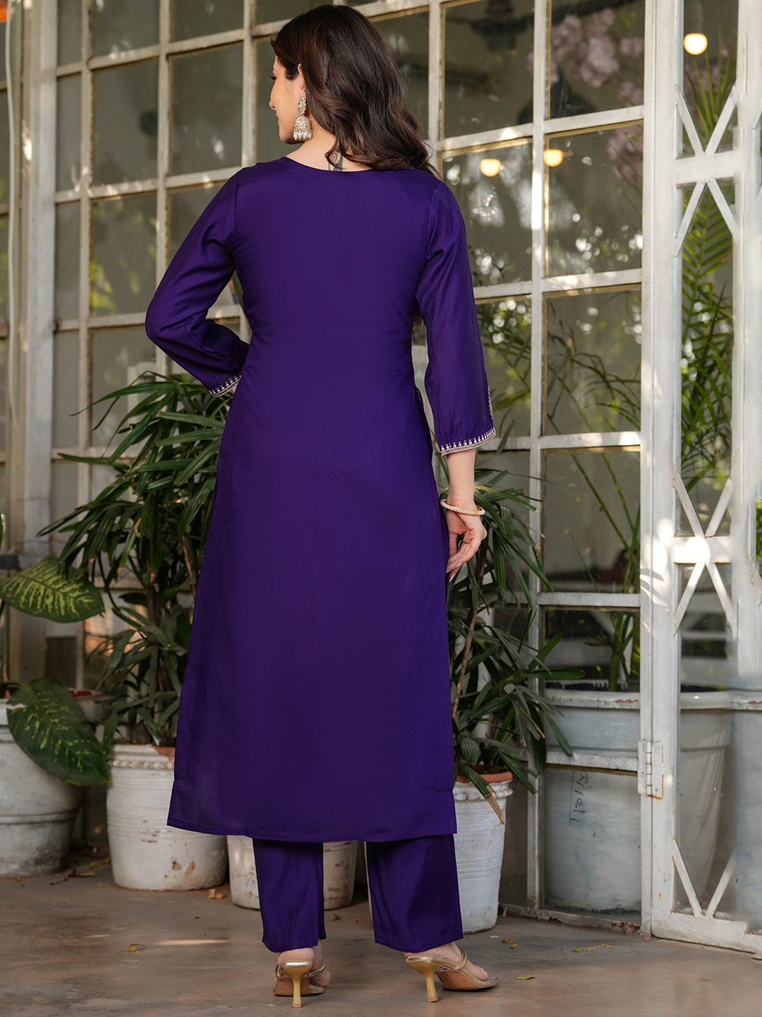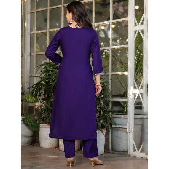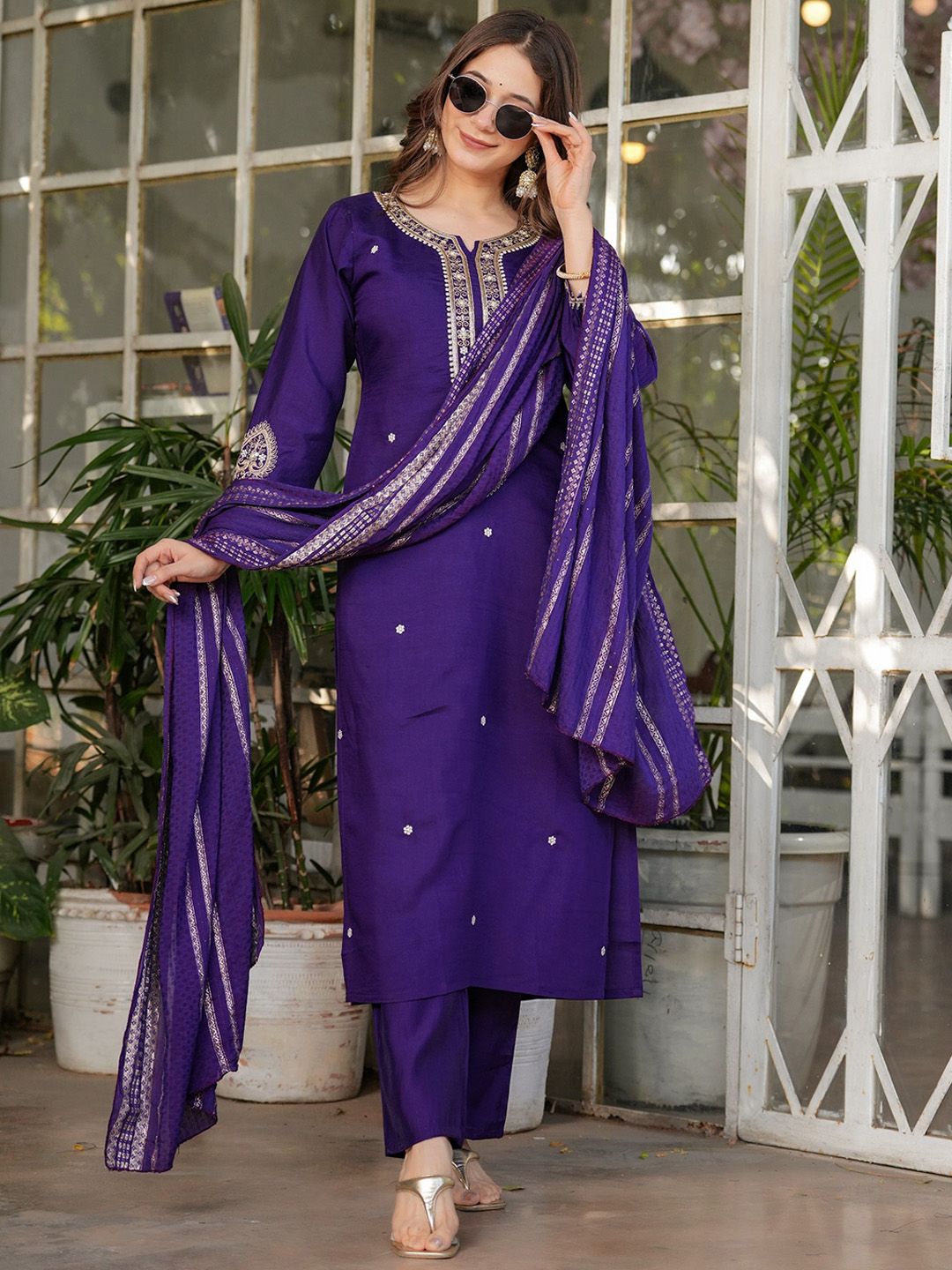 Purple and gold toned embroidered Kurta with Trousers and dupatta