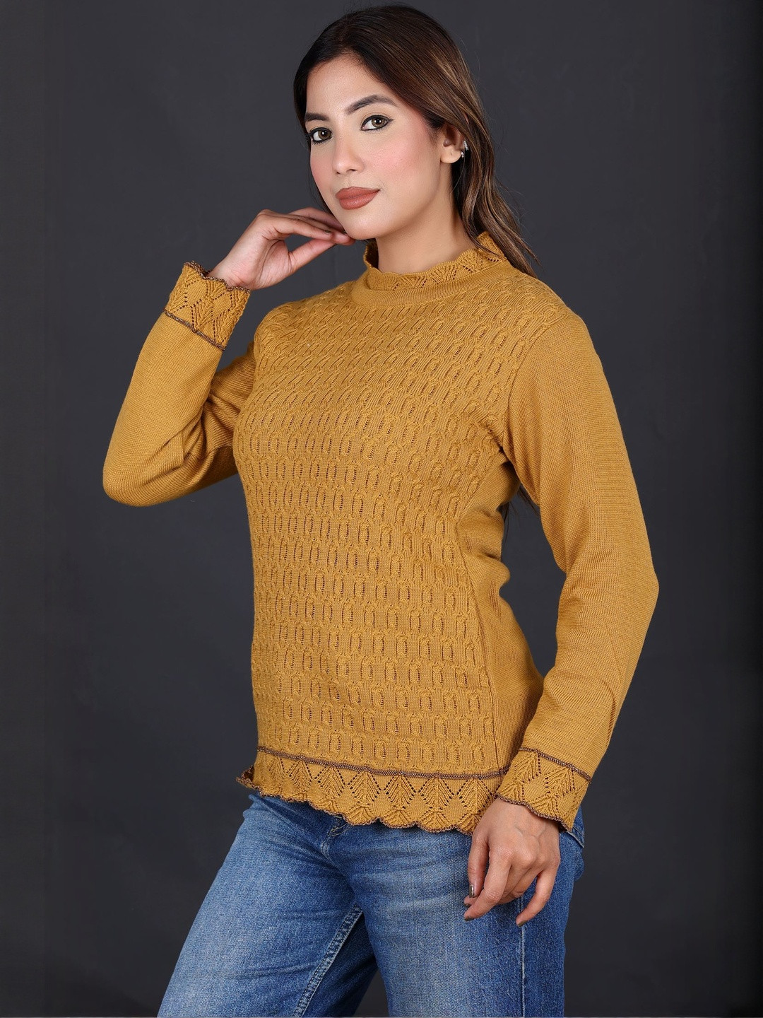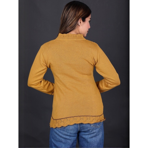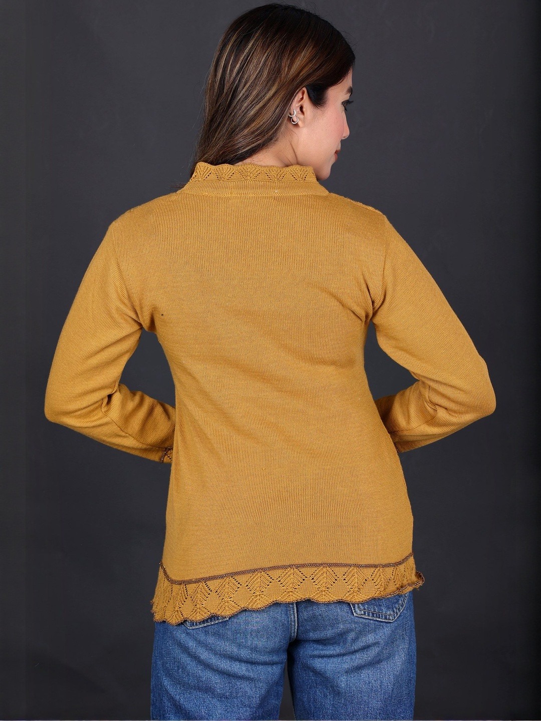 Gold-toned delf design cable knit cardigan sweater, tutle neck, long sleeves, Asymmetric hem