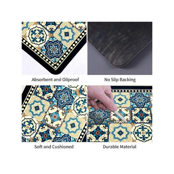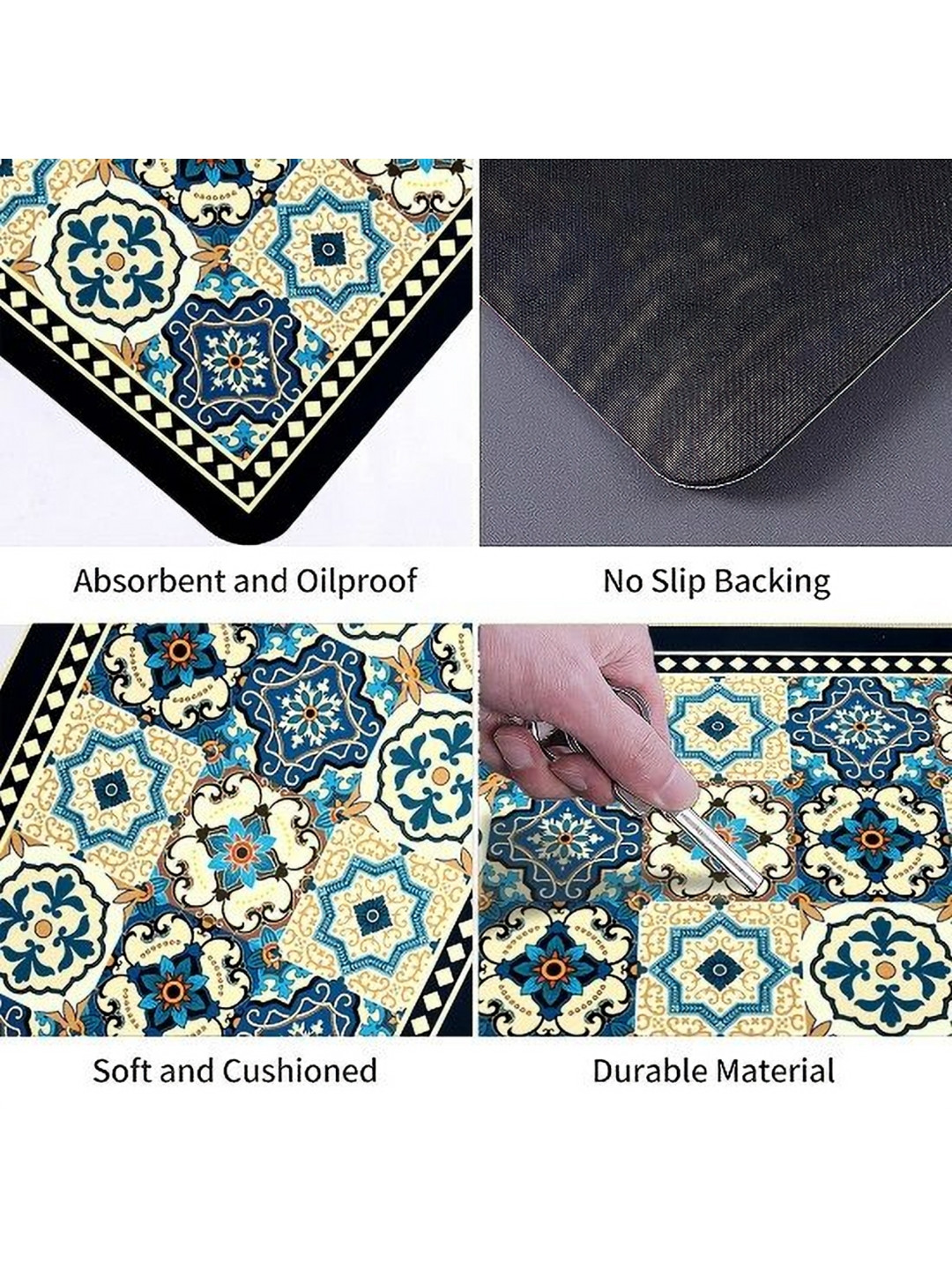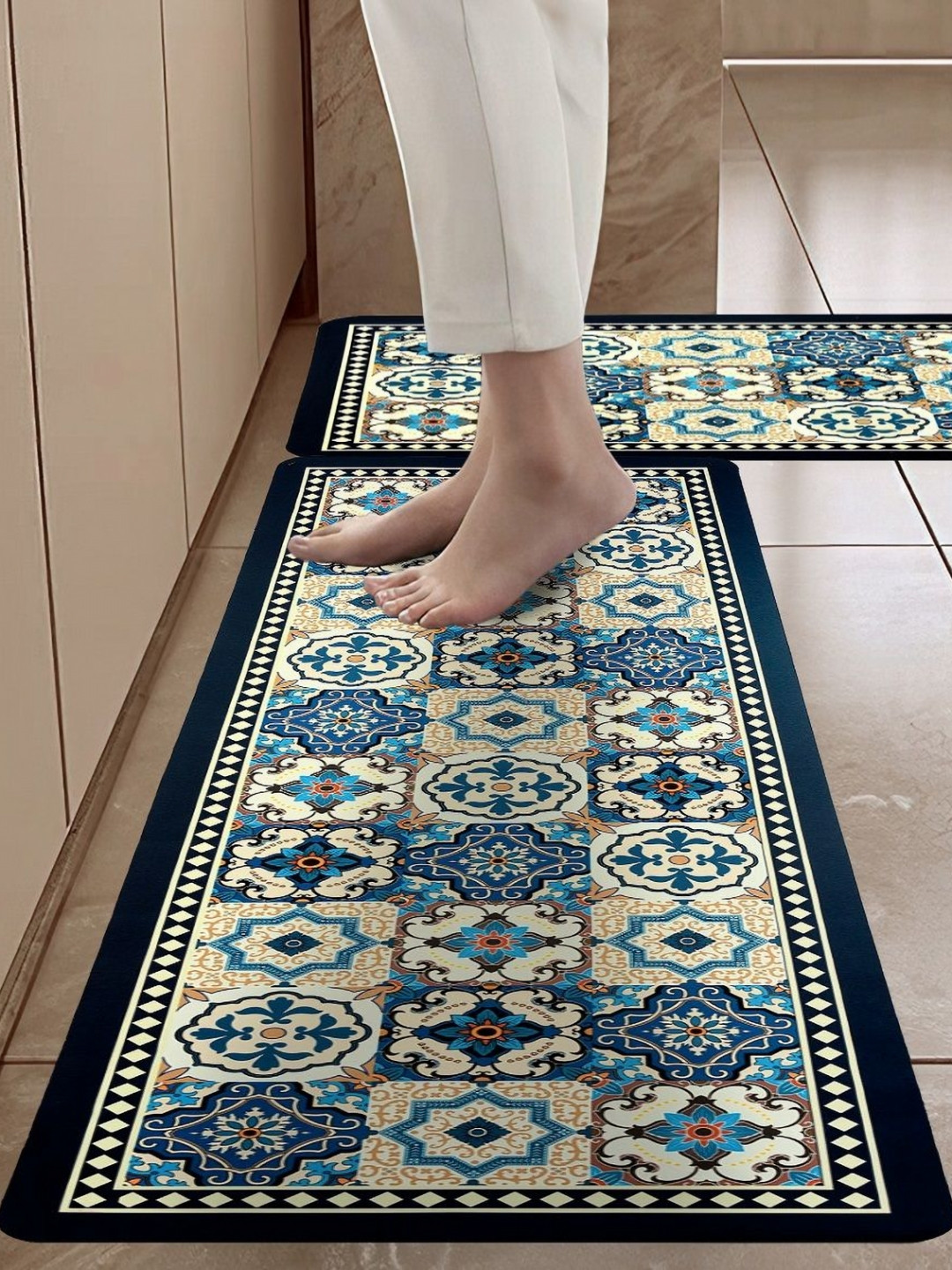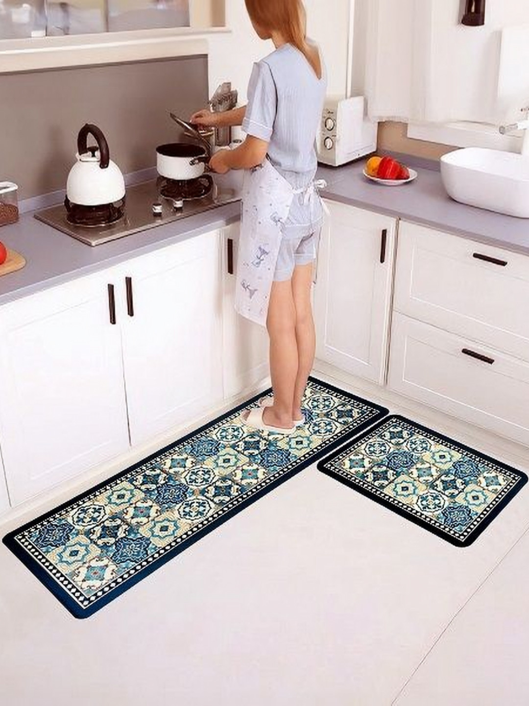 2 Pieces Blue & Beige Floral Printed Water-Proof Runners