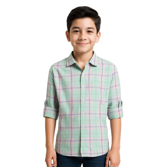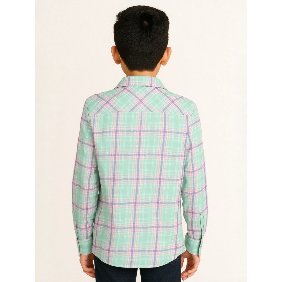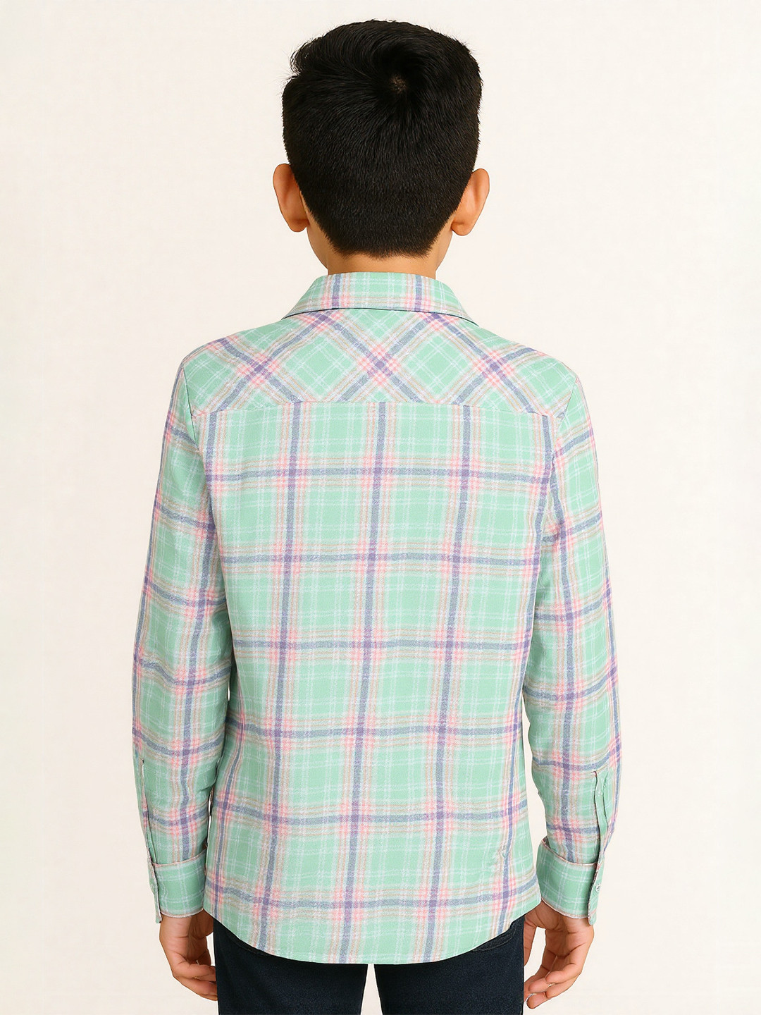 Boys Comfort Fit Shepherd Checked Spread Collar Cotton Casual Shirt