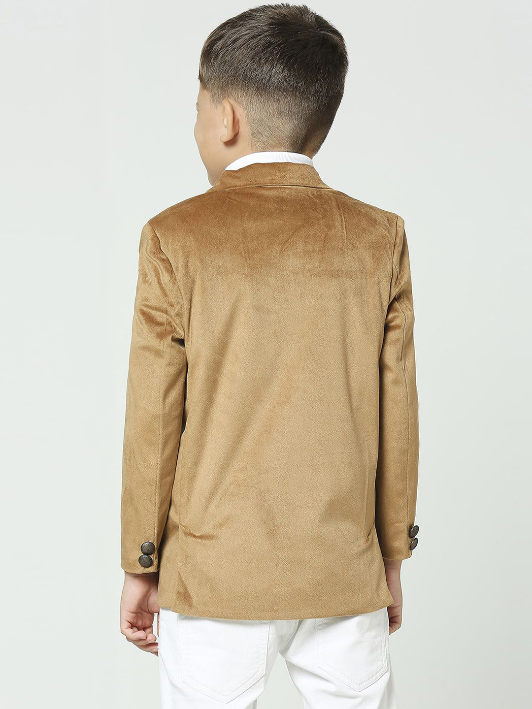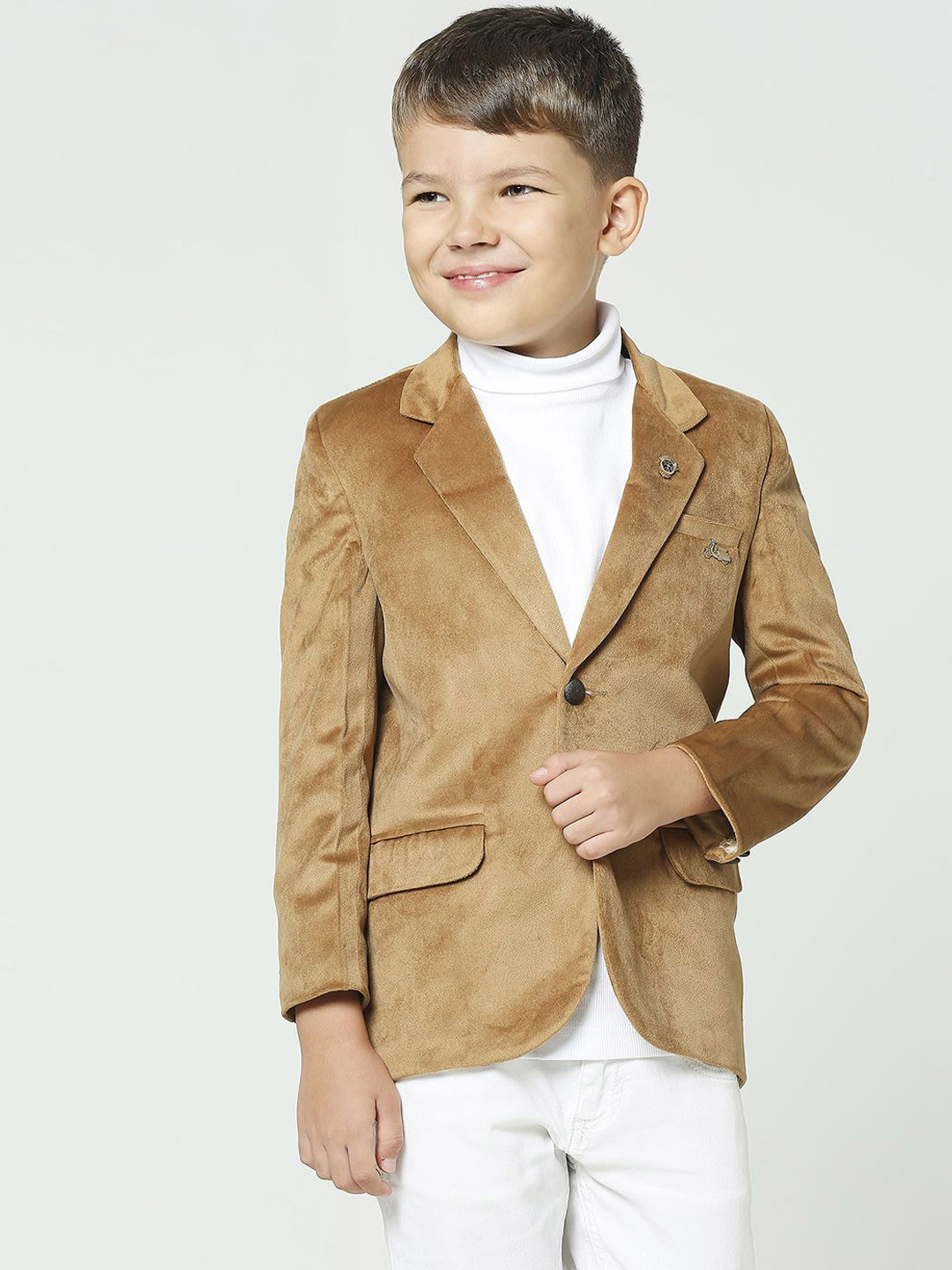 Boys Notched Lapel Collar Comfort Fit Velvet Single Breasted Blazer