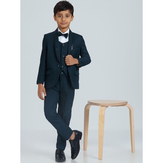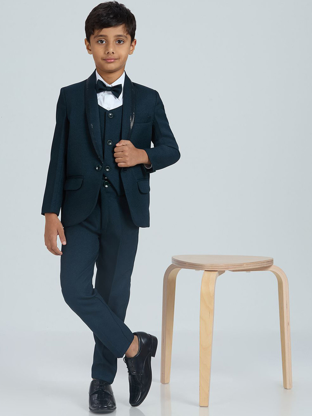 Boys Sequined Embellished Notched Lapel Single-Breasted Five Piece Party Suit