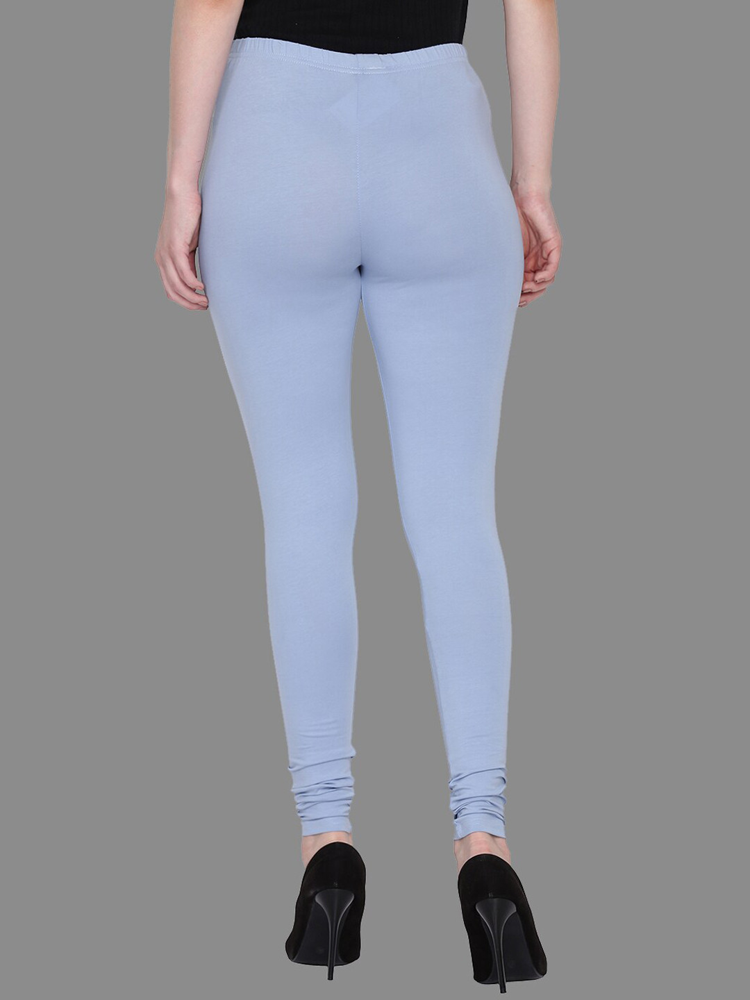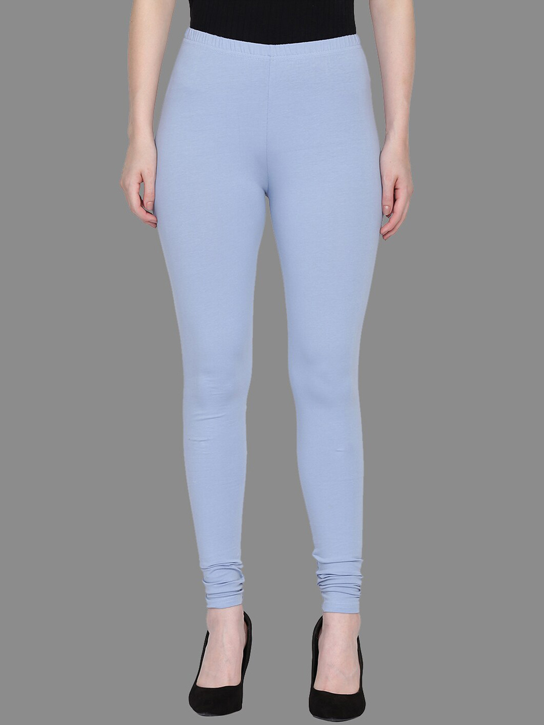 Blue solid ankle length leggings, has an elasticated waistband and slip-on closure