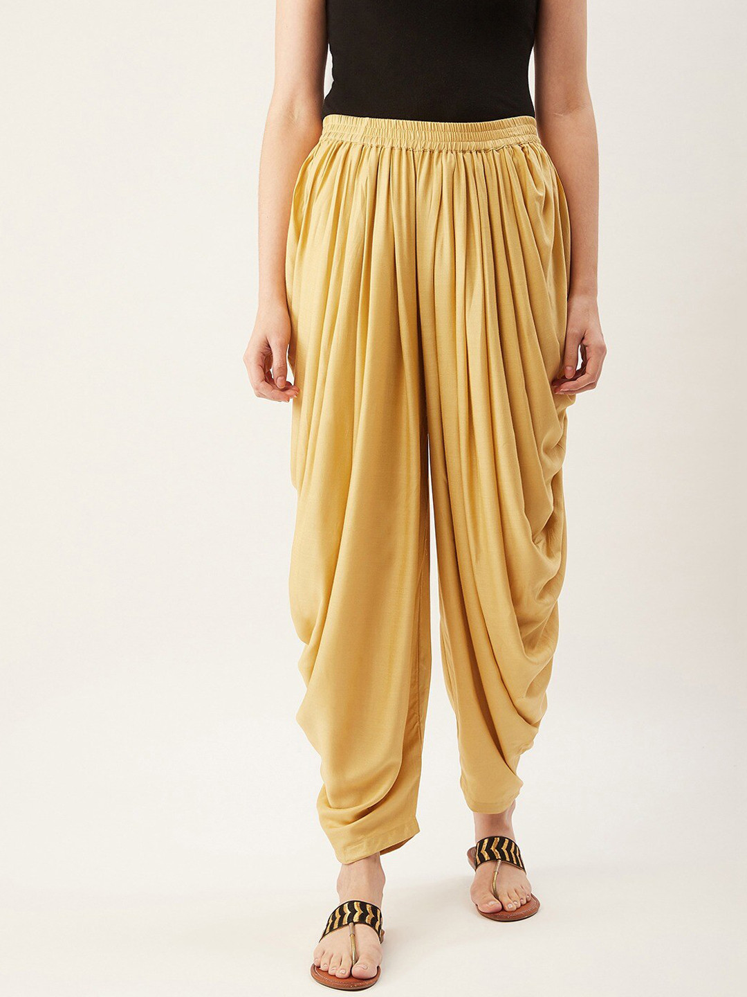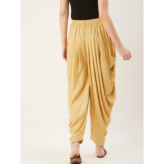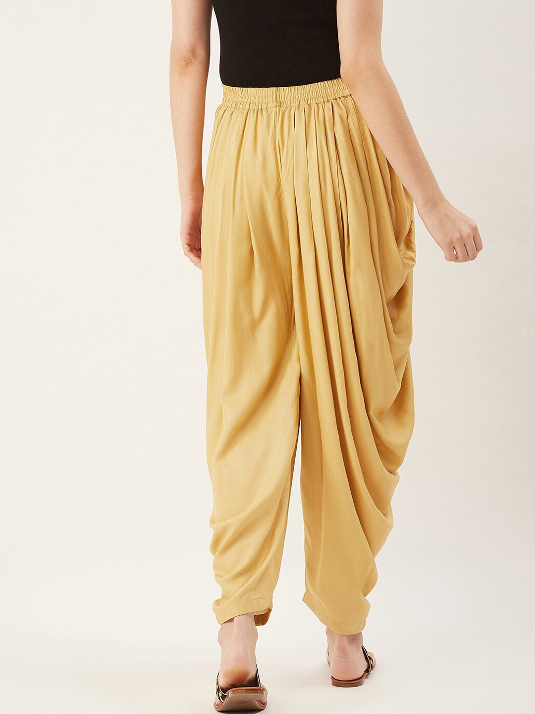 Beige solid mid-rise Patiala with gathers and pleats has an elasticated waistband with a slip-on closure