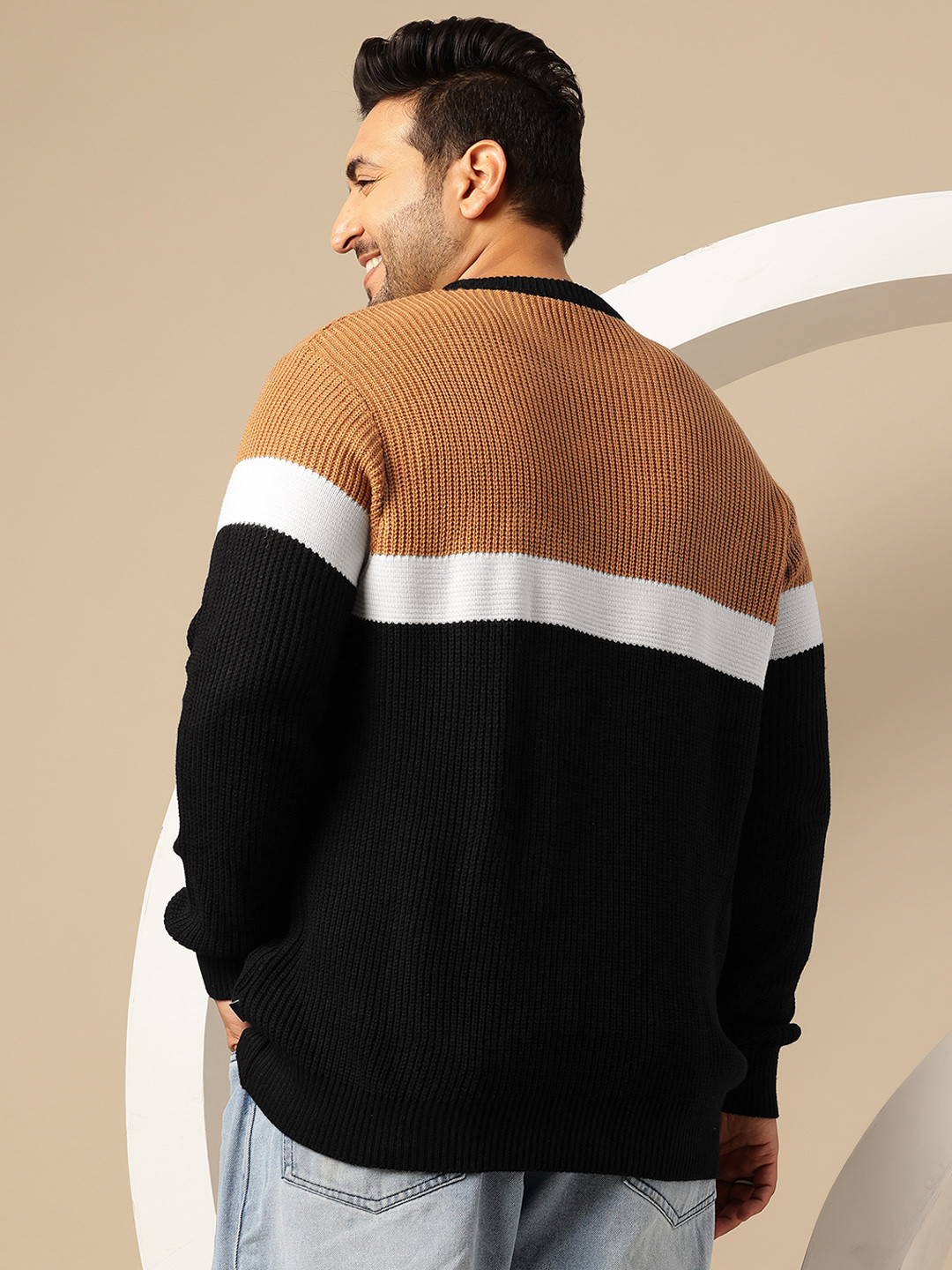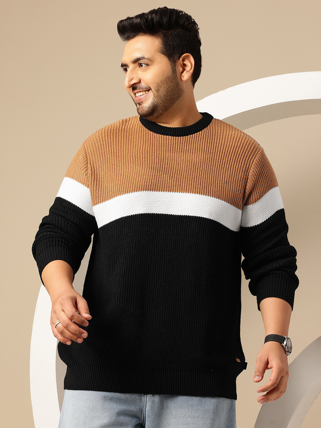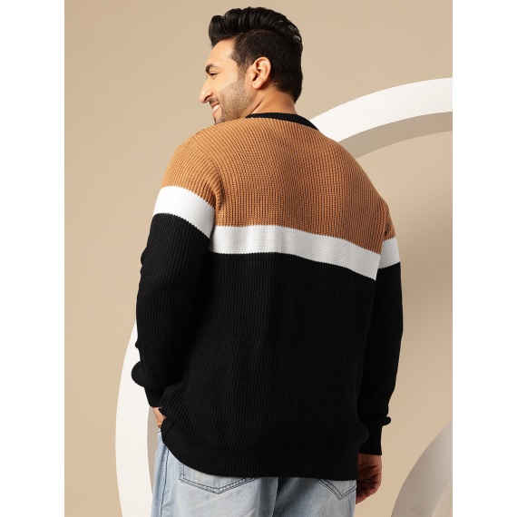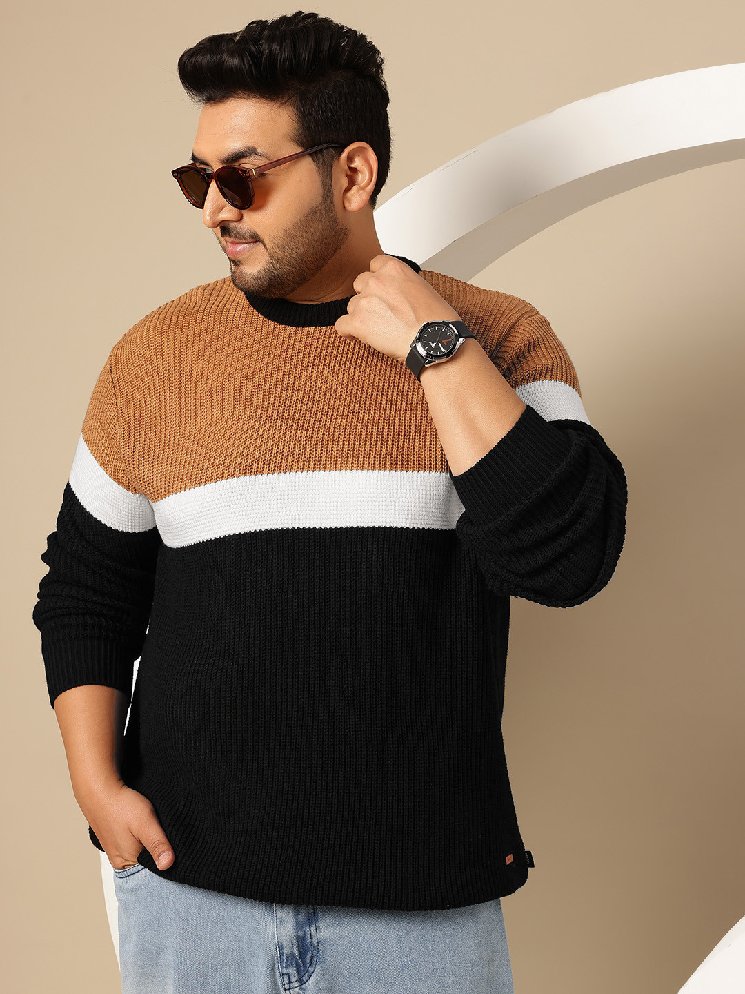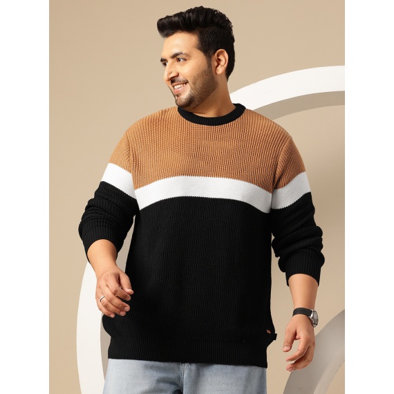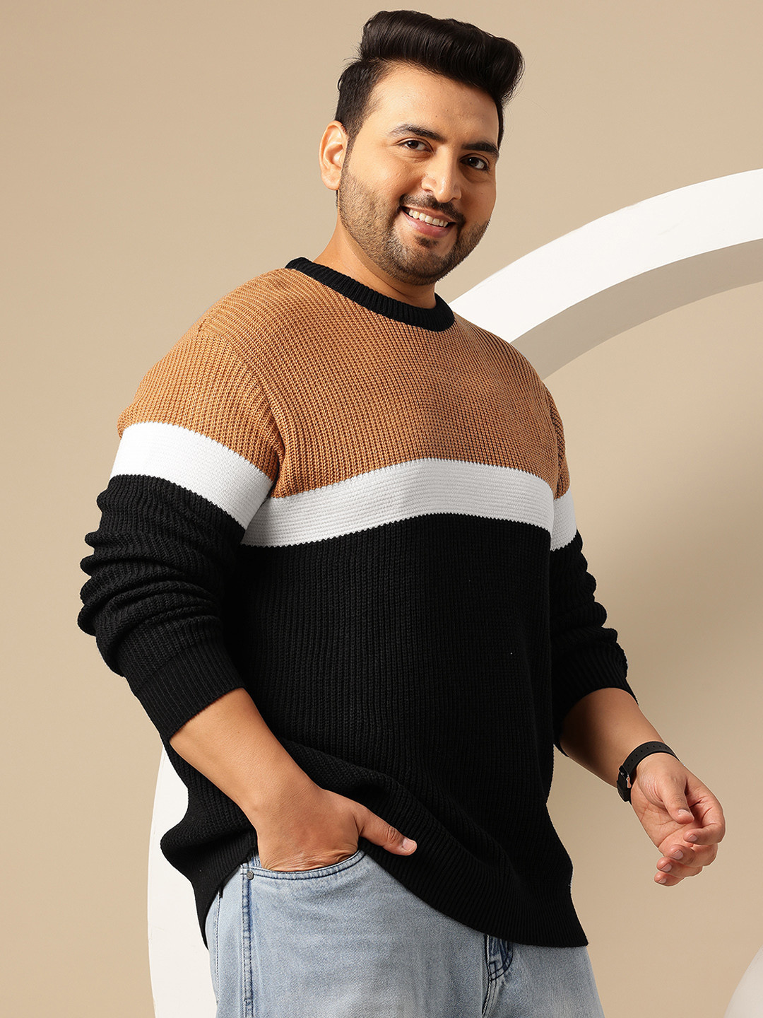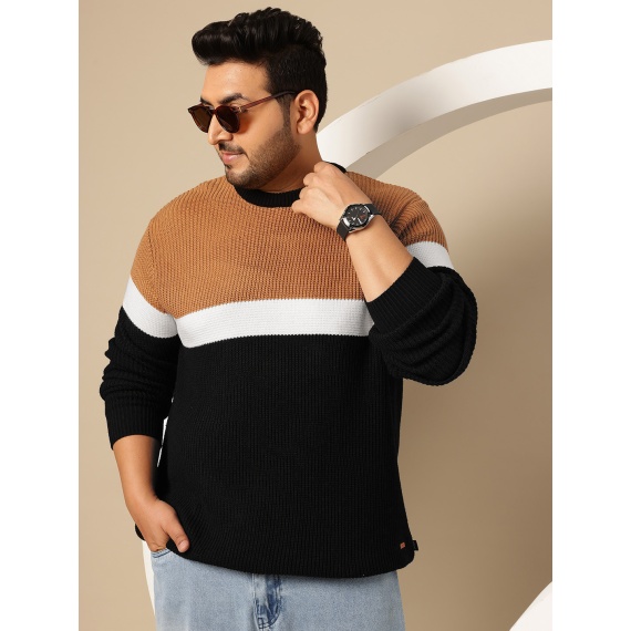 Black colourblocked pullover ,has a round neck, long sleeves, ribbed hem