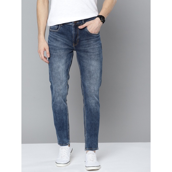 - Tapered fit, mid-rise