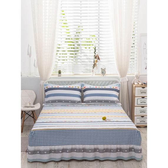 Blue & White Printed Pure Cotton Single Bed Sheet & Pillow Covers