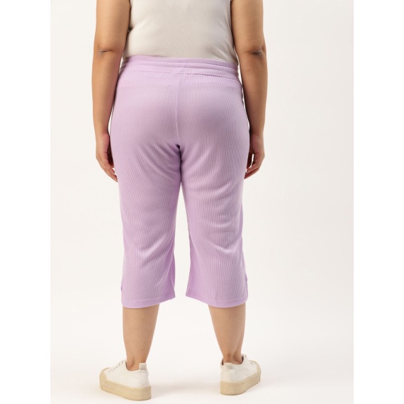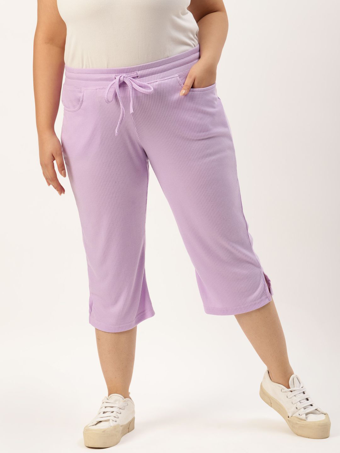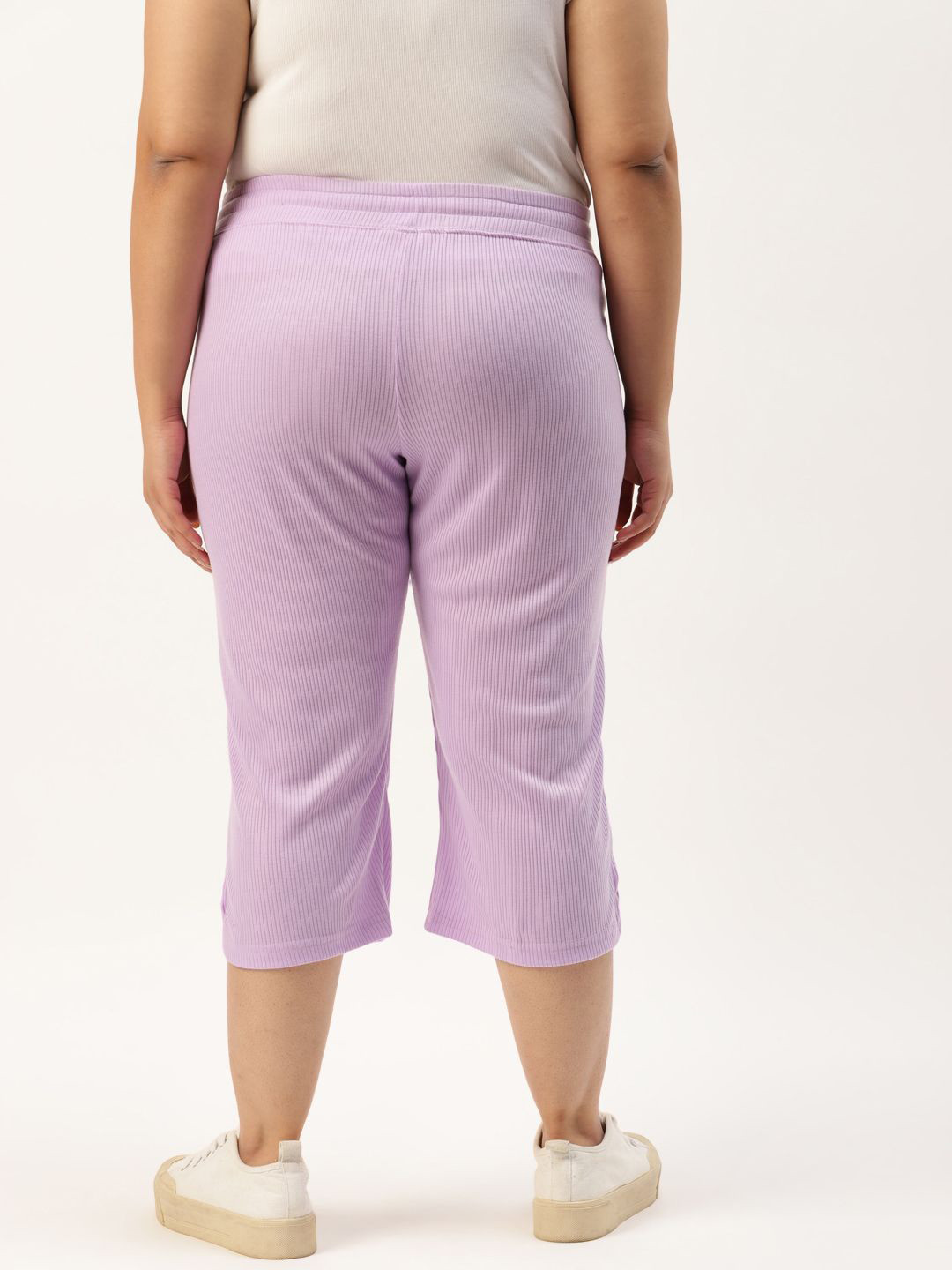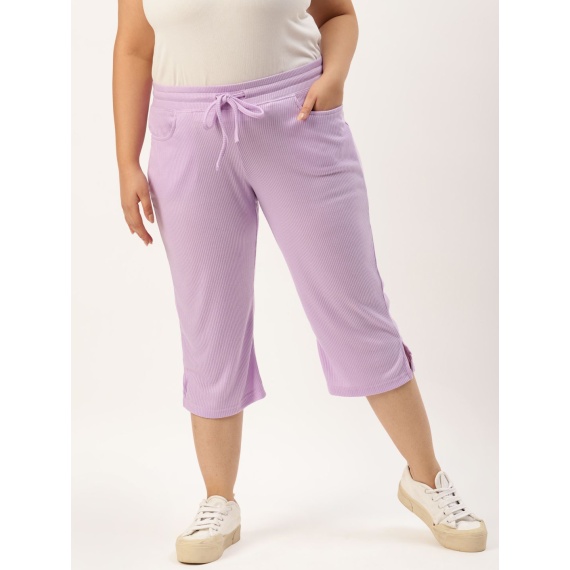 Lavender high-rise solid capris, has drawstring closure, 2 pocket