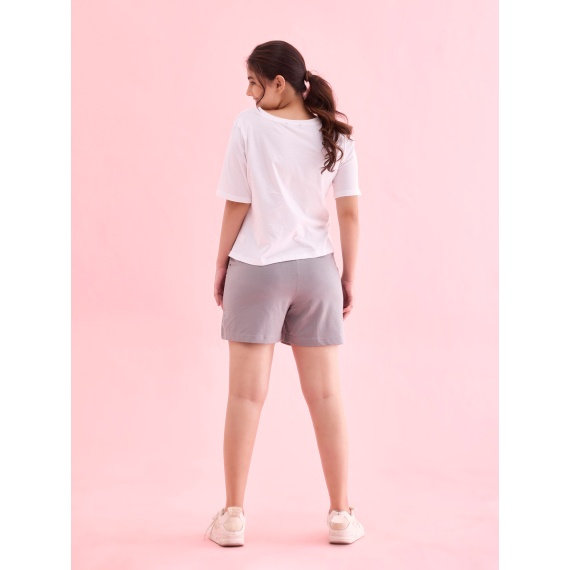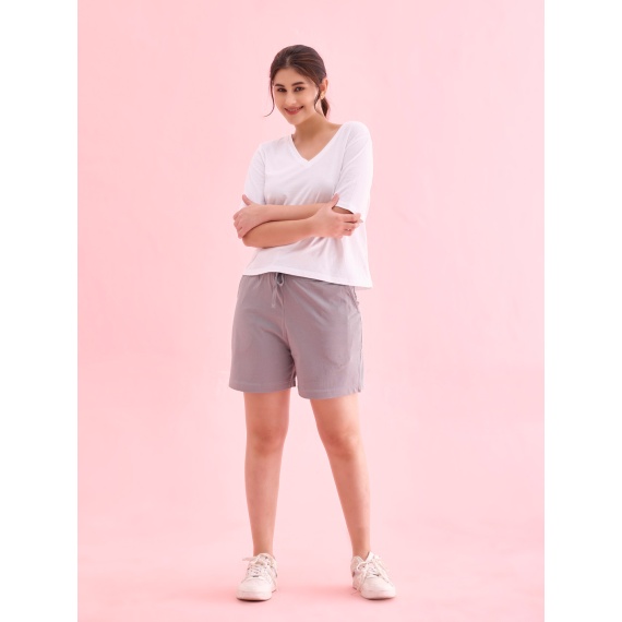 Grey solid mid-rise sports shorts, has 2 pockets, drawstring closure